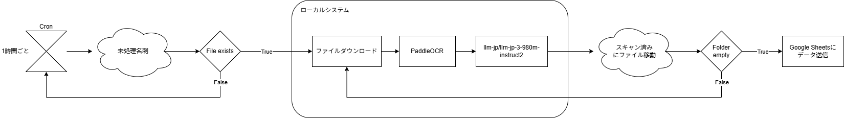今回のプロジェクトは、OCRとLLMを使って名刺を自動でデータの管理するシステムを作ってみました。変革したデータはGoogleスプレッドシートに保存します。手作業での入力を減らし、効率的に情報を管理できます。