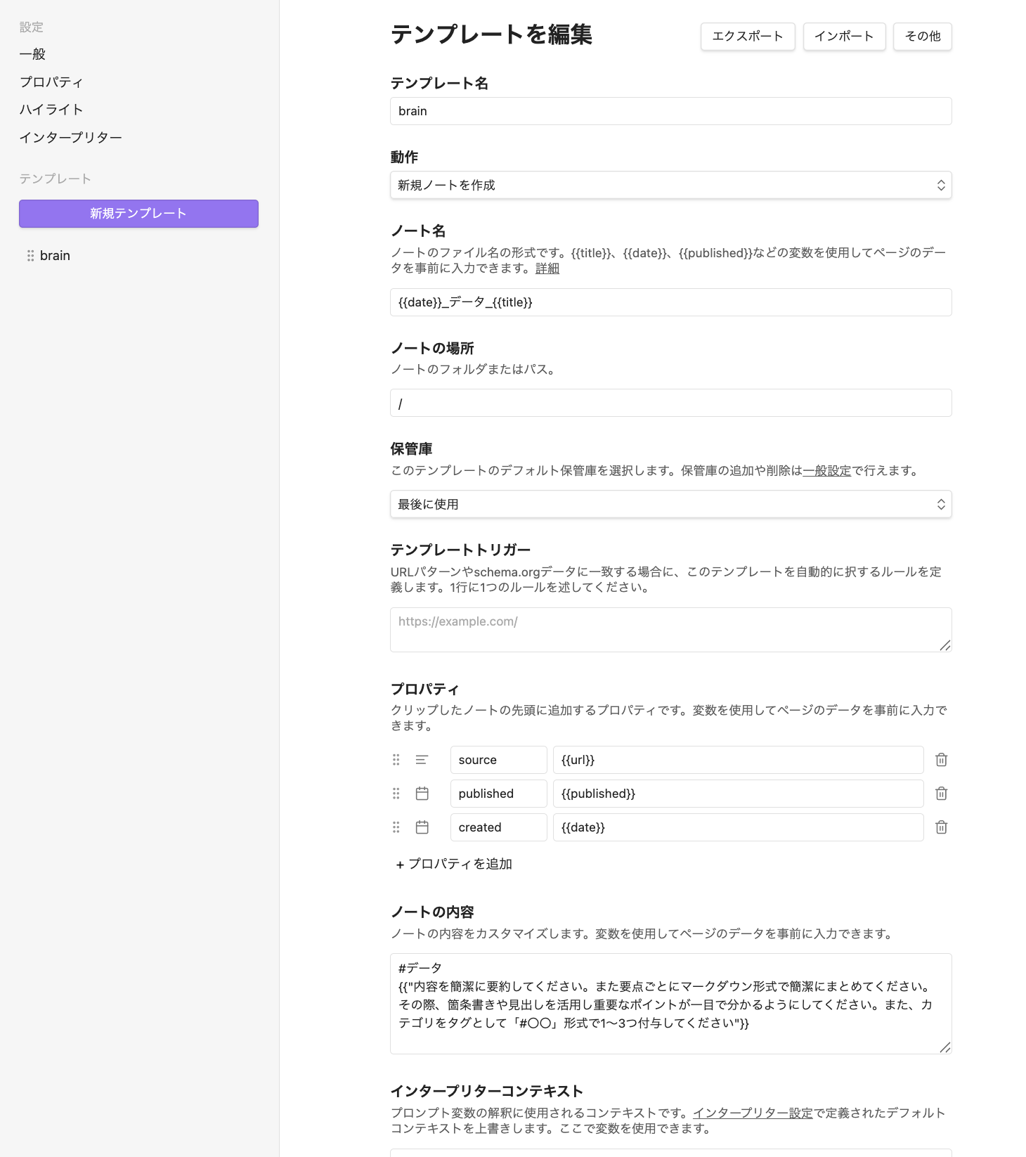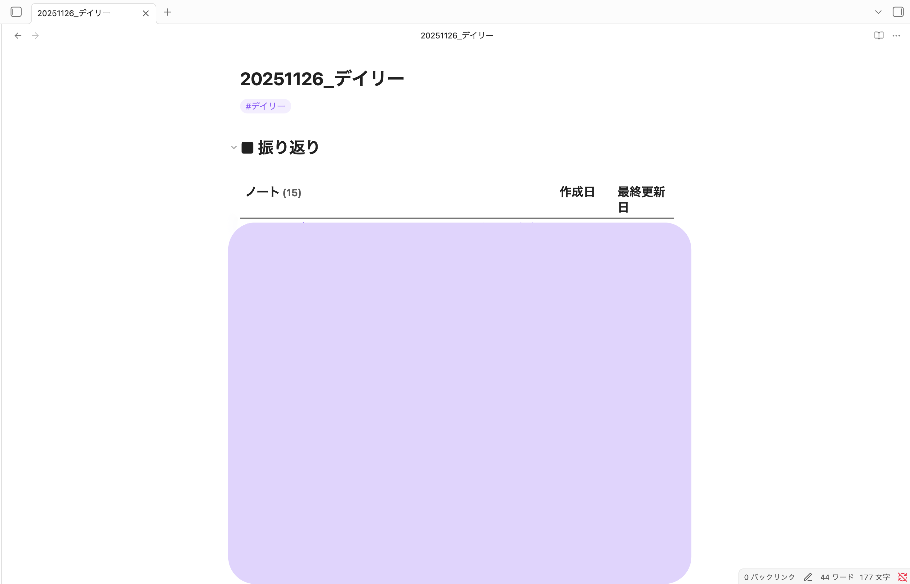 {{"内容を簡潔に要約してください。また要点ごとにマークダウン形式で簡潔にまとめてください。その際、箇条書きや見出しを活用し重要なポイントが一目で分かるようにしてください。また、カテゴリをタグとして「#〇〇」形式で1~3つ付与してください"}}以下のクエリをデイリーノートテンプレートに貼り付け、毎日自動で過去のテーマが発掘されるように設定します。