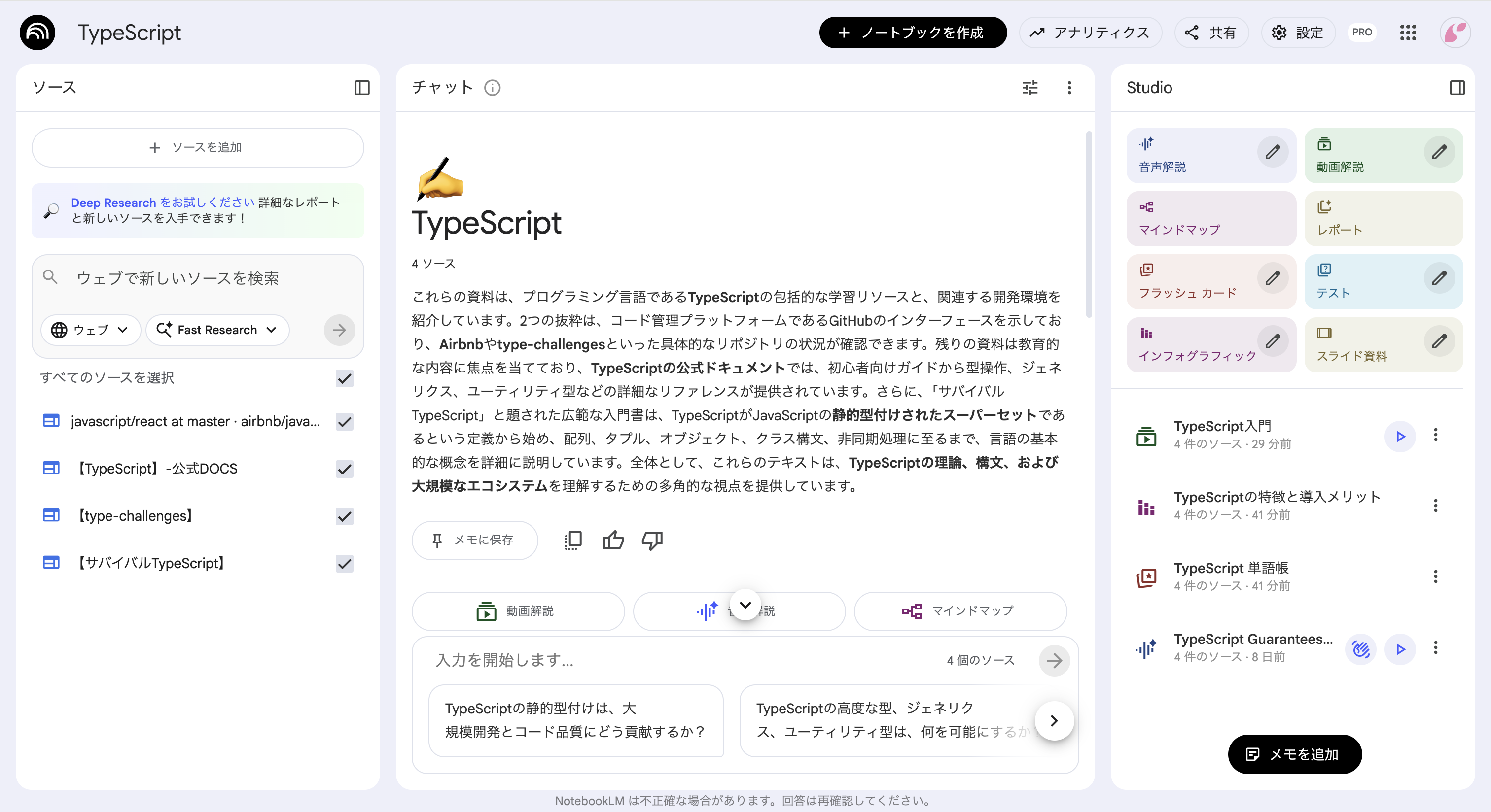 右側のStudioからさまざまなインプット・アウトプット方法が選択できます。
