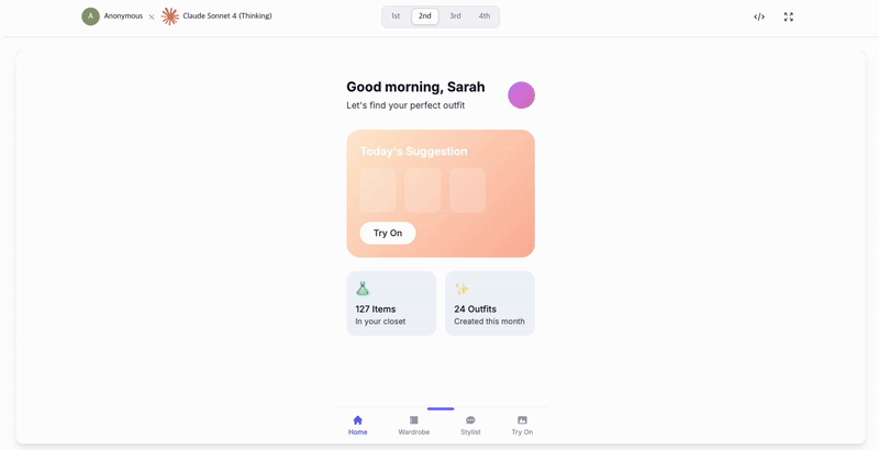 たとえばこちらは他の方が作った UIコンポーネントです。 プロンプトは「バーチャルクローゼットアプリ」を入力しています。
