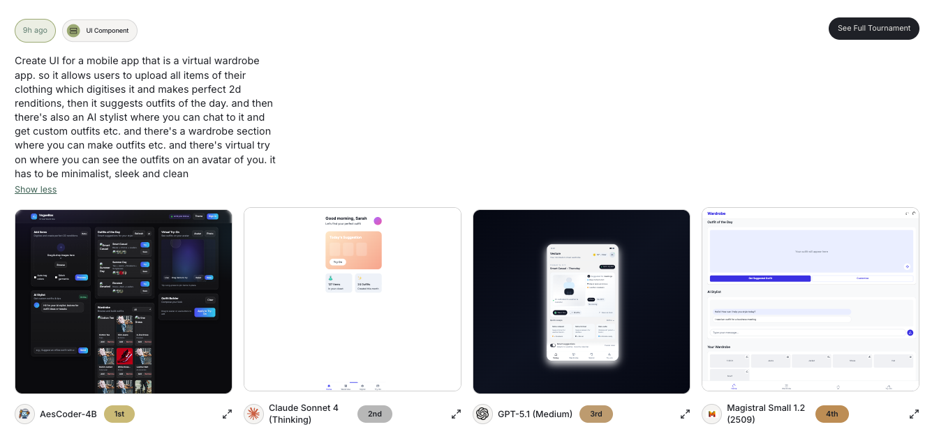 このサービスでは、AIが生成したデザインをユーザーが評価し、モデルごとのランキングを作成することができます。