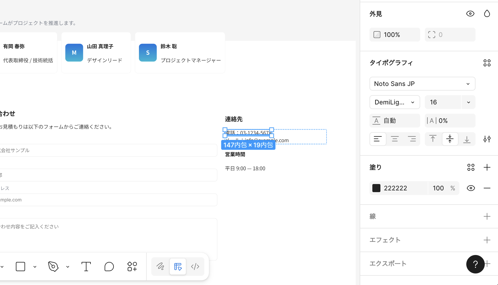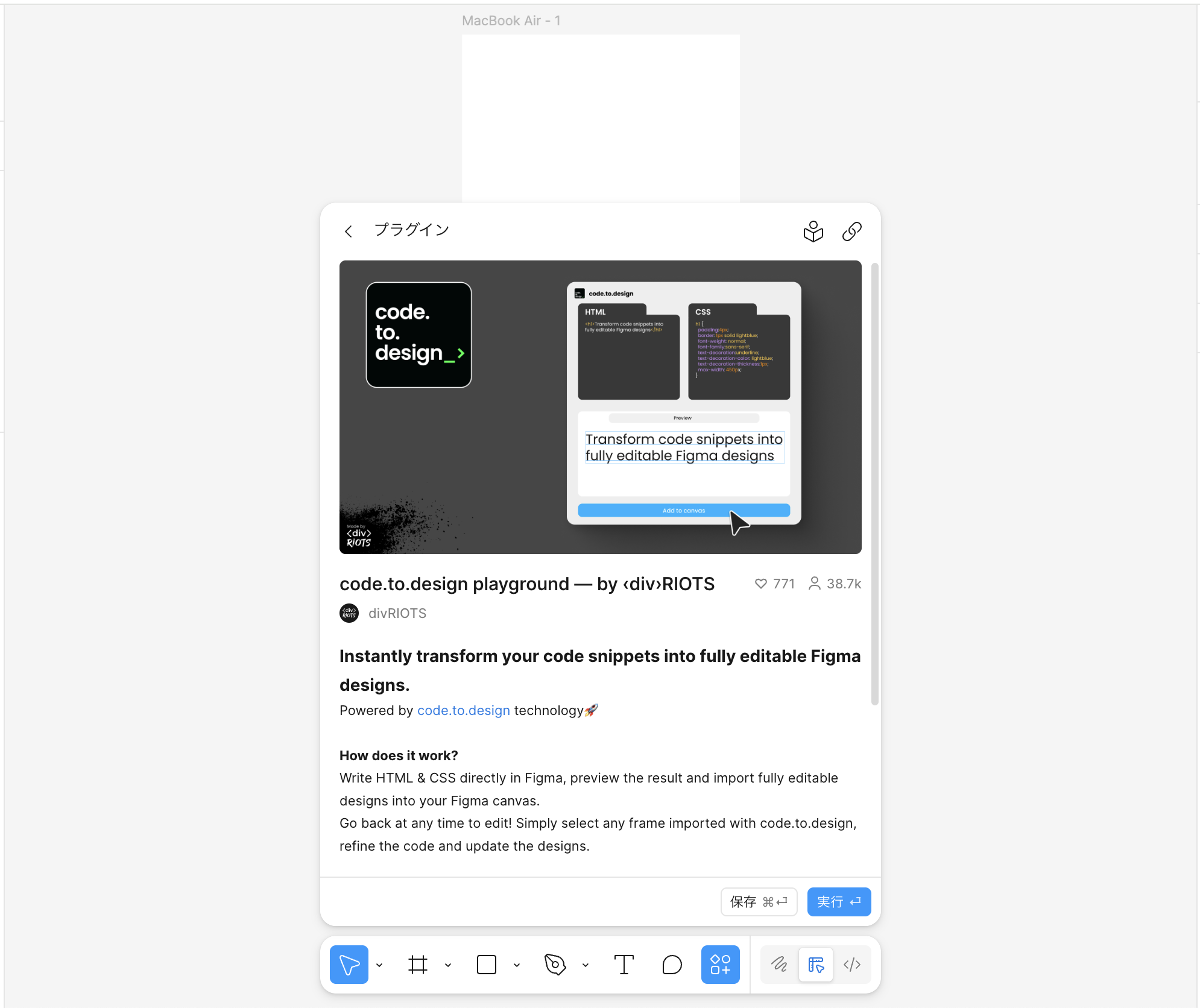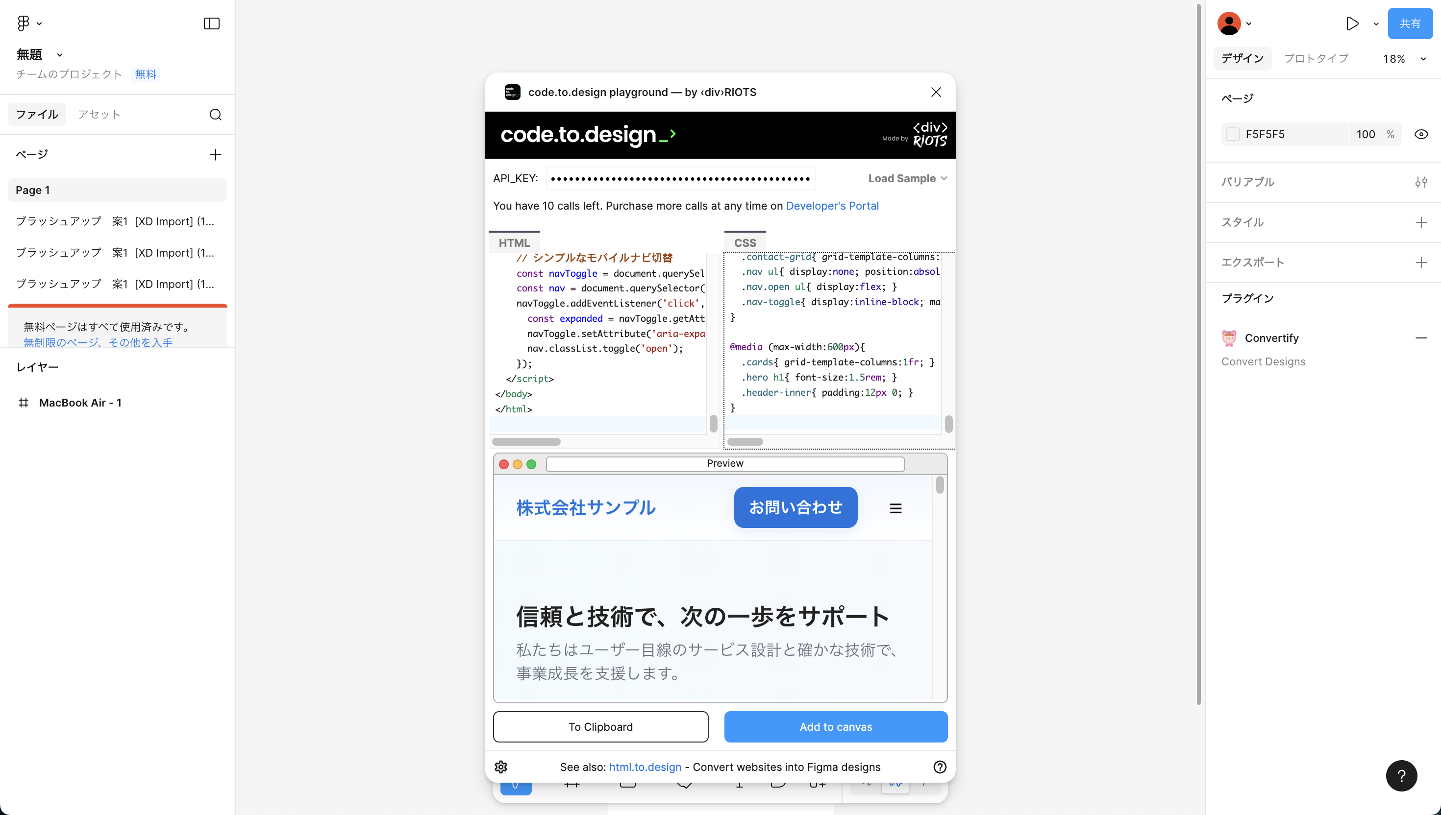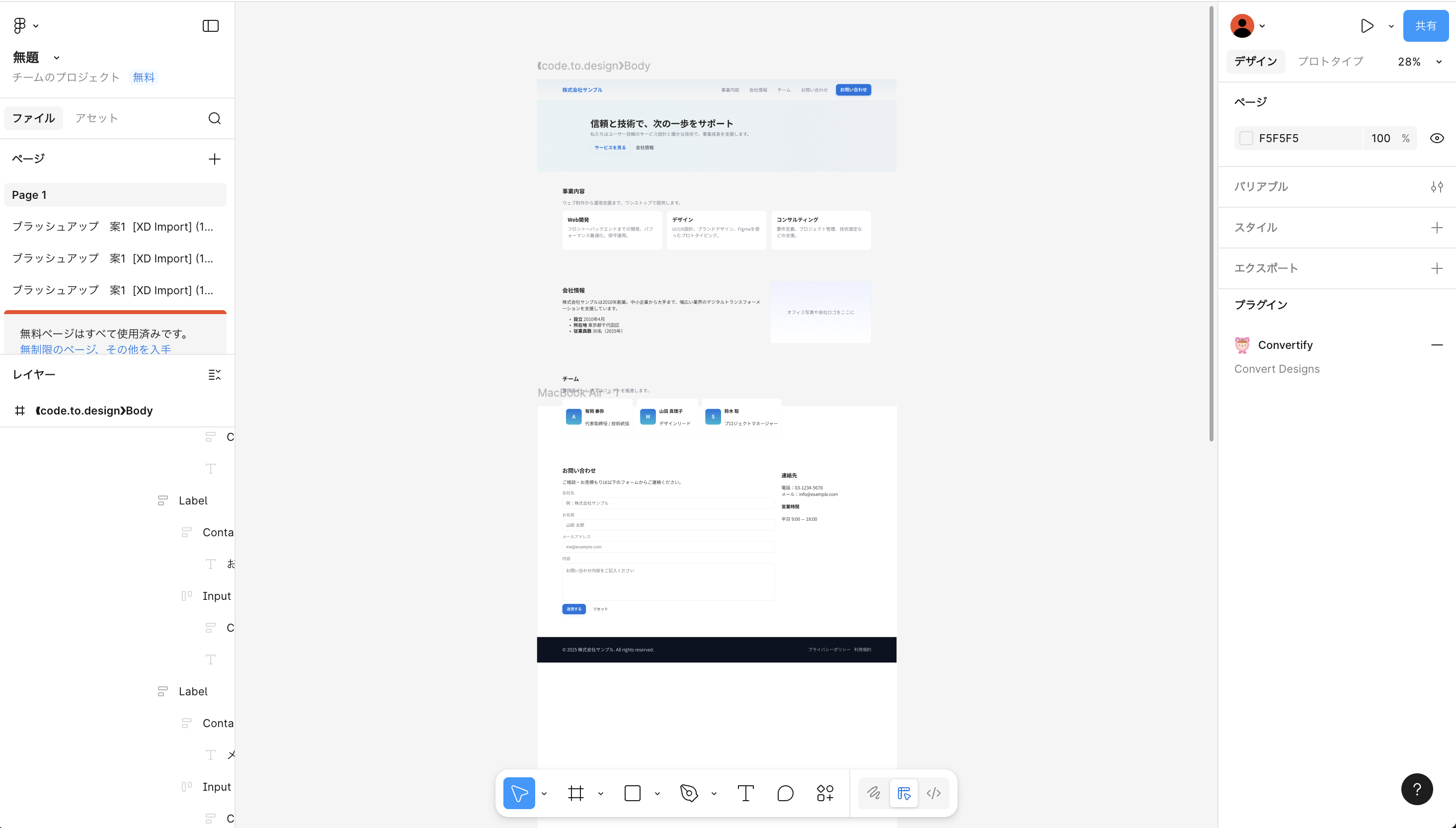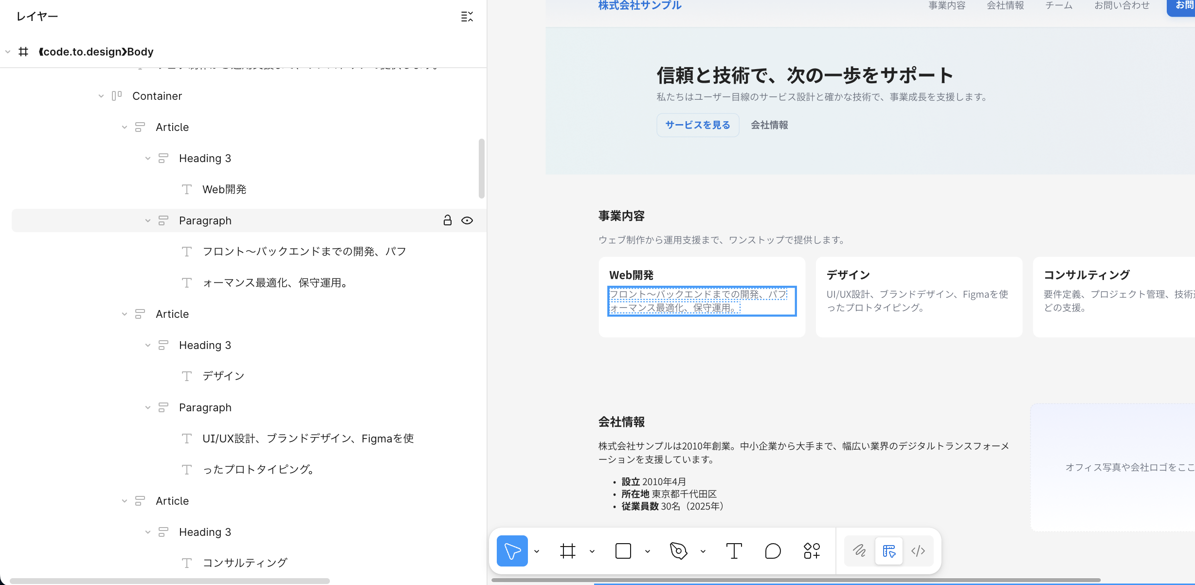 完了するとソースコード通りのデザインがFigmaに反映されます。